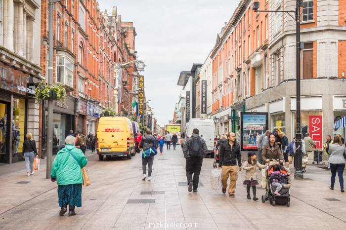 Dublin’de alışveriş yapabileceğiniz caddelerden birisi de Henry Street’tir. Zara, Oasis, Mango, Debenhams gibi mağazalara ev sahipliği yapan bu cadde Londra’daki Oxford Street’e benzemektedir. Ancak elbette Oxford Street’den daha küçüktür. O’Connell Street’de çok ucuza birbirinden güzel ürünler bulabileceğiniz Penney’s yer almaktadır.